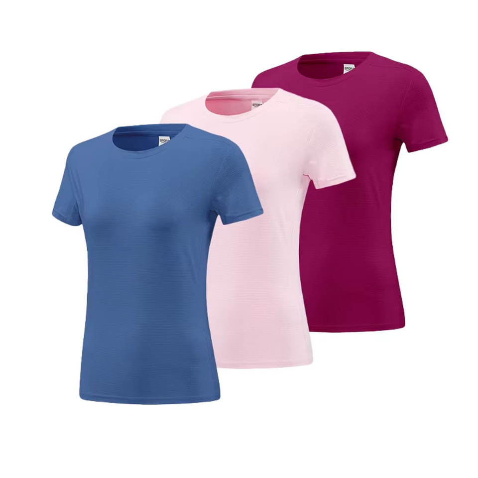 เสื้อยืดคอกลมแขนสั้นสำหรับผู้หญิงผ้าคอตตอน100% ออกแบบโลโก้ได้ตามต้องการสี