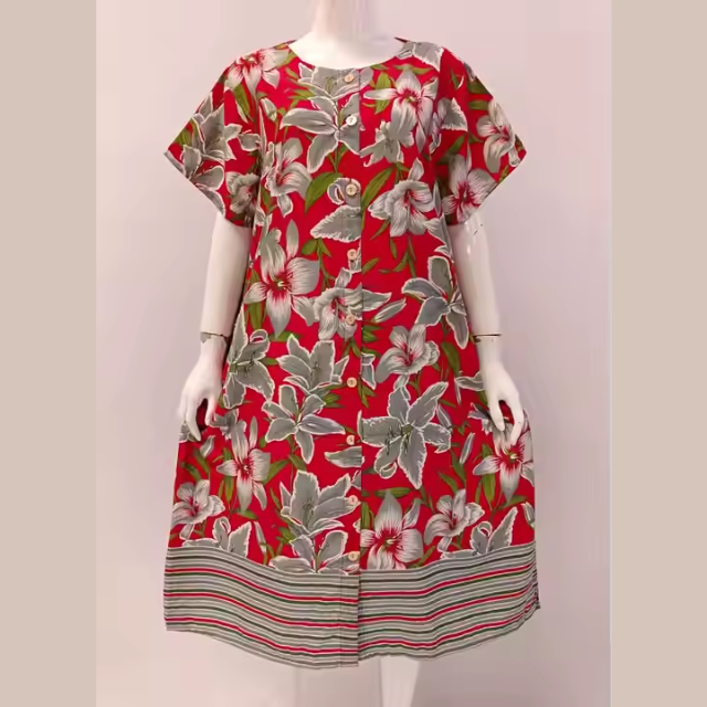 ชุดเดรสลำลองยาวถึงเข่าสำหรับผู้หญิงชุดนอนหรือชุดนอนฤดูร้อนติดกระดุมด้านหน้า