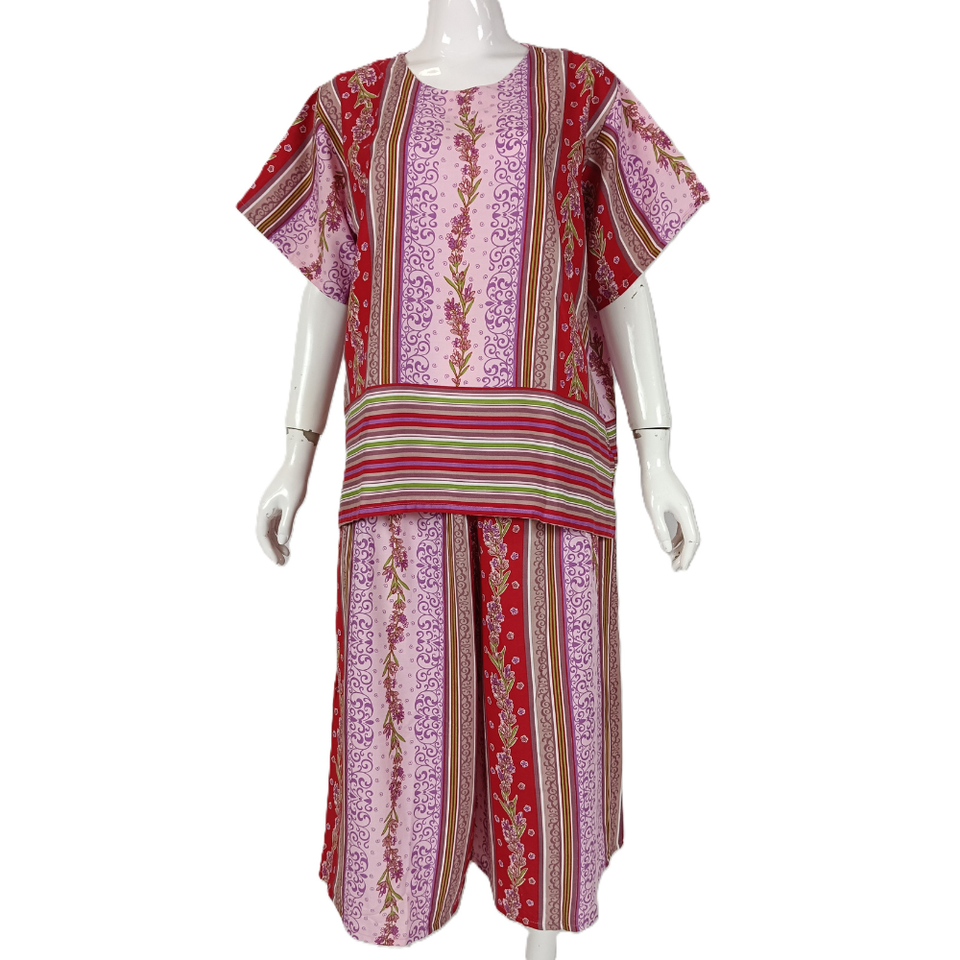 ชุดนอนผู้หญิงลายดอกไม้บาติก แขนสั้น กางเกงขาสั้น ผ้าเรยอน 100% ระบายอากาศได้ดี สวมใส่สบายทุกวัน