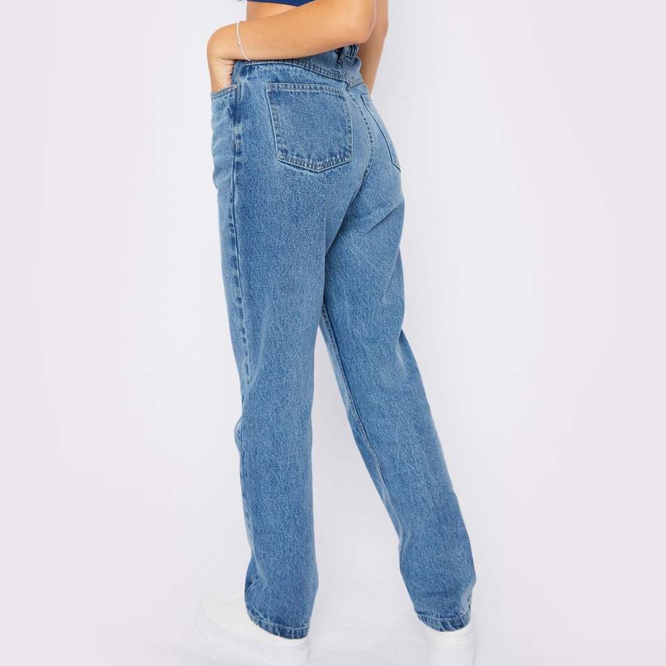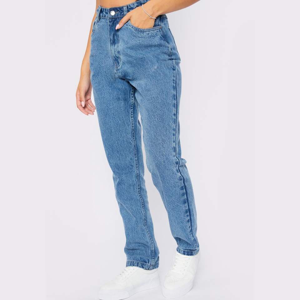 กางเกงยีนส์ลำลองผู้หญิง กางเกงยีนส์แฟชั่นเอวสูงสีน้ำเงิน กางเกงเดนิมผู้หญิงคลาสสิก