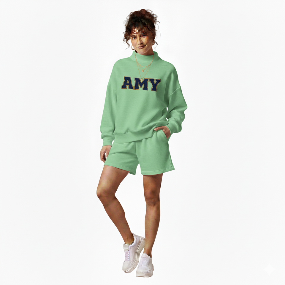 ชุดเซ็ตเสื้อคอเต่าและกางเกงขาสั้นสำหรับผู้หญิง