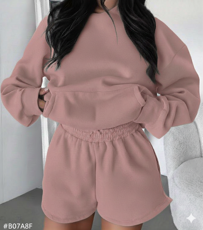 ชุดเซ็ตเสื้อฮู้ดดี้และกางเกงขาสั้นลำลองสำหรับผู้หญิง ทรงหลวม สไตล์มินิมอล โมเดิร์น สตรีท 100% ผ้าฝ้าย ให้ความสบายในชีวิตประจำวัน