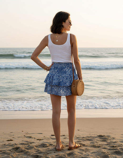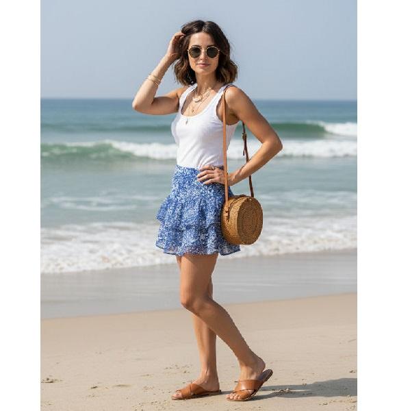 กระโปรงมินิสั้นลำลองสำหรับผู้หญิง ผ้าเนื้อนุ่ม น้ำหนักเบา ระบายอากาศได้ดี ดีไซน์ทันสมัย เหมาะสำหรับวันหยุดพักผ่อนที่ชายหาดและชุดลำลองประจำวัน