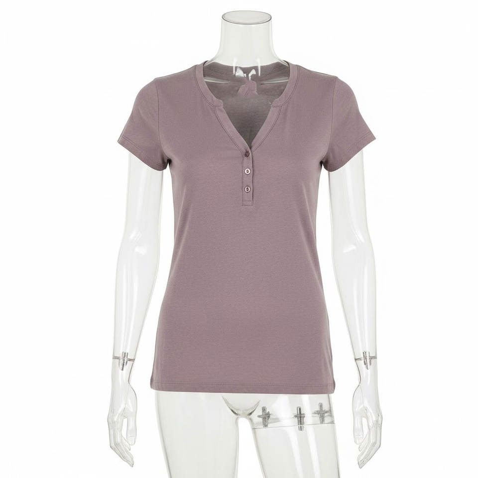 เสื้อยืดลำลองผู้หญิง แขนสั้น ติดกระดุม ทรงสปอร์ต เนื้อผ้านุ่ม ใส่สบาย คอกลม น้ำหนักเบา เหมาะสำหรับออกกำลังกายที่ยิม