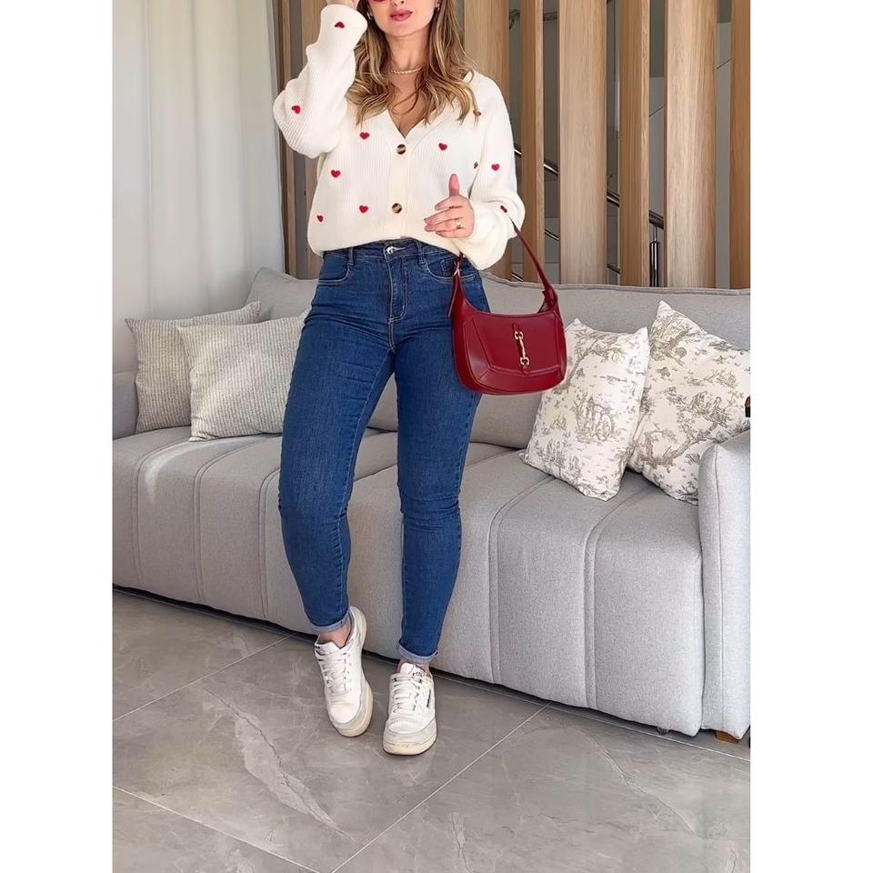กางเกงยีนส์เดนิมลำลองสำหรับผู้หญิง เอวสูง ทรงสกินนี่ ขายาว คุณภาพพรีเมียม ปักลายแบบกำหนดเอง สไตล์วินเทจ