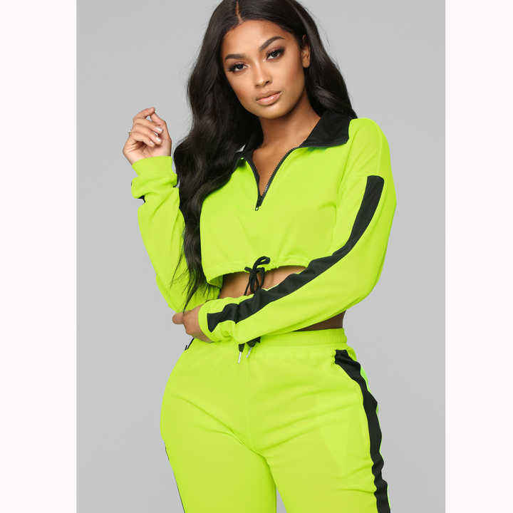 Women Casual Windbreaker Tracksuit 2 Piece Set Zipper Crop Top Women Windbreaker Tracksuit Set High Quality