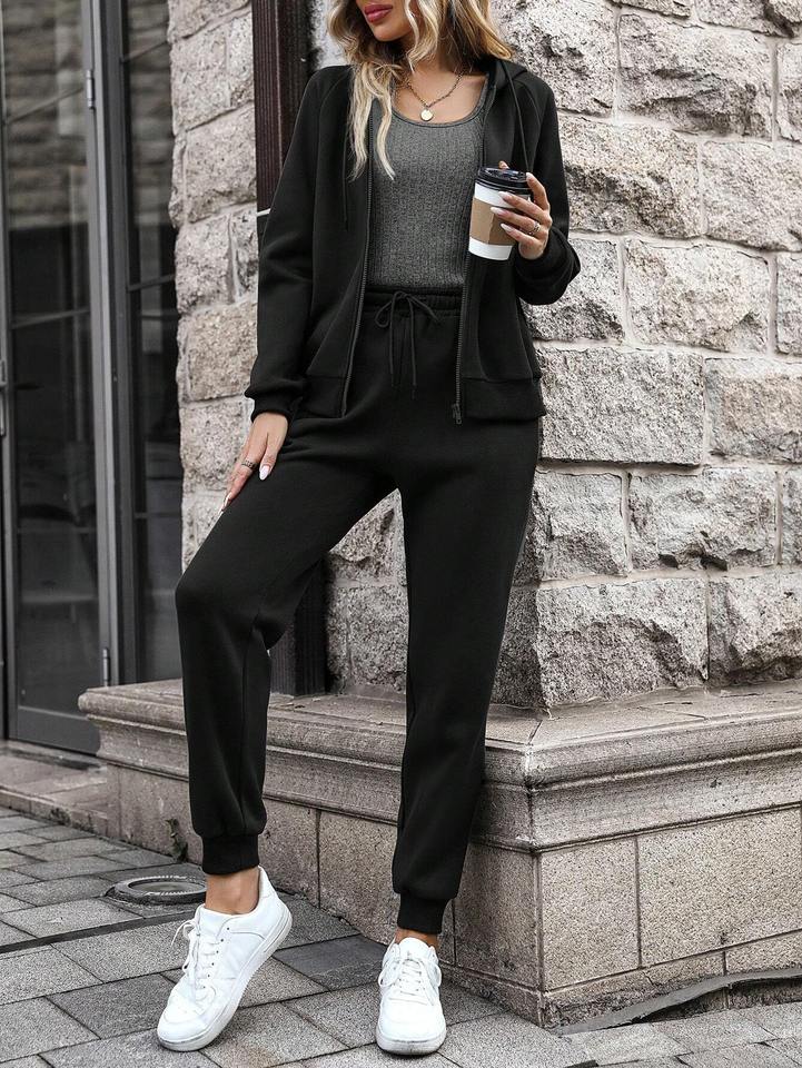 ชุดวอร์มมีซิปแบบลำลองสำหรับผู้หญิงชุดวอร์มกางเกงวิ่งแบบนุ่มและมีฮู้ดชุดใส่สบายใส่ได้ทุกวันโลโก้ตามต้องการ