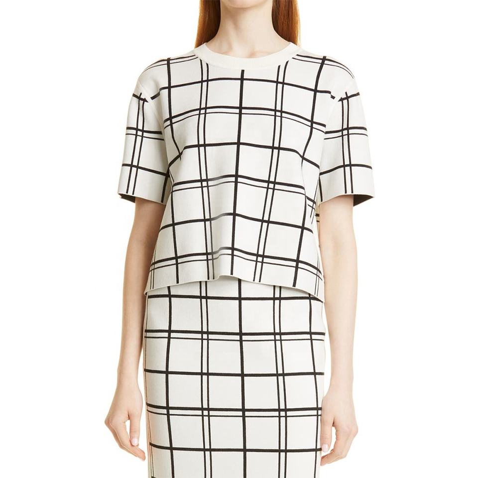 เสื้อยืดลายตารางสำหรับผู้หญิง,เสื้อยืดลำลองที่ออกแบบมาให้ดูน่าสนใจสำหรับฤดูร้อนเสื้อเชิ๊ตผู้หญิงตัวเล็กขายดีมีคุณภาพ