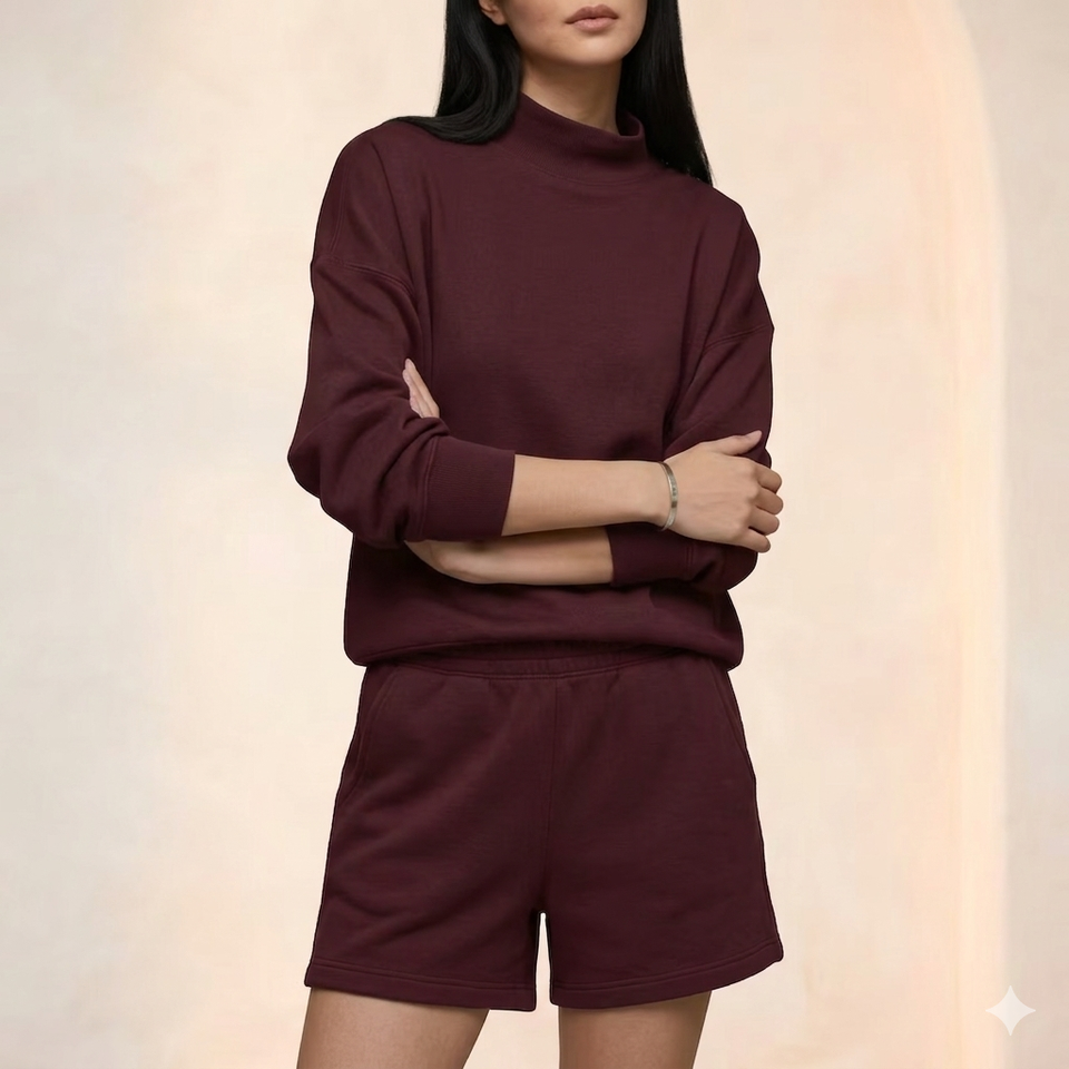 ชุดเซ็ตเสื้อคอเต่าและกางเกงขาสั้นสำหรับผู้หญิง สไตล์เก๋ไก๋ ใส่สบาย อุ่น นุ่ม ดูดี เหมาะสำหรับใส่ในชีวิตประจำวันช่วงฤดูหนาว