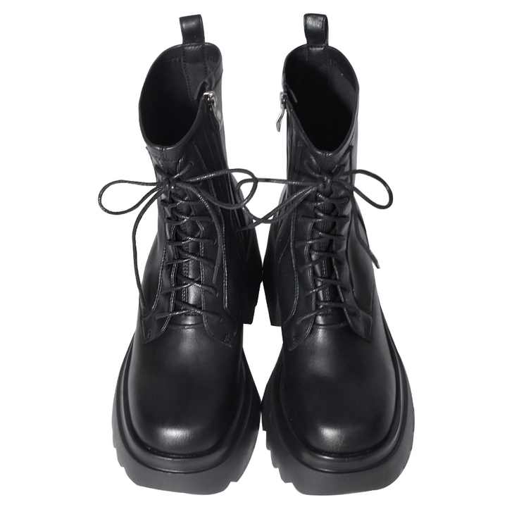 รองเท้าบูทหุ้มข้อส้นหนาสำหรับผู้หญิง ส้นสูง 8.5 ซม. แฟชั่นสตรีท