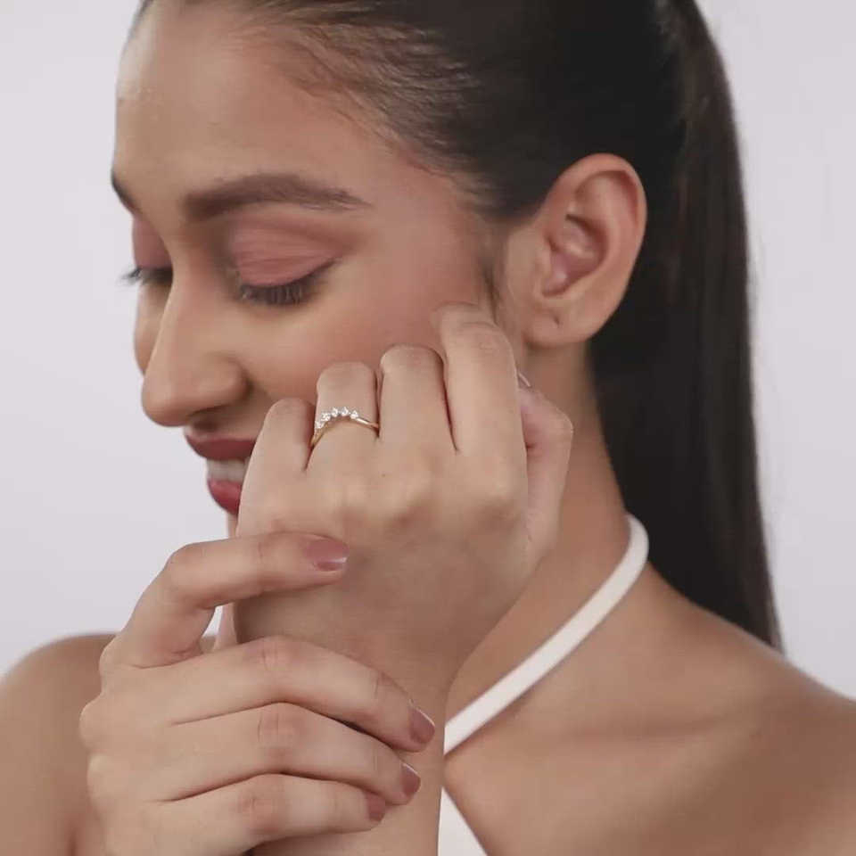 แหวนทองคำขาวชุบทองคำชมพูประดับเพชรเลี้ยงในห้องปฏิบัติการ คอลเลคชั่นเมห์ตับ สำหรับงานแต่งงาน งานครบรอบ และงานเฉลิมฉลองต่างๆ