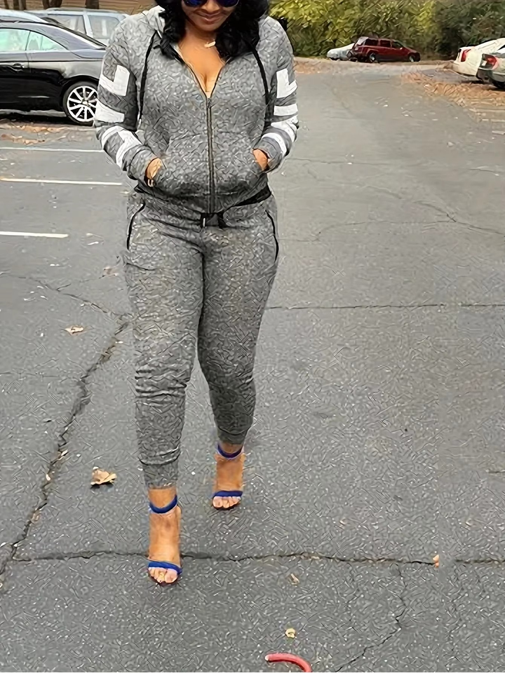 ชุดกีฬาผู้หญิงแบบลำลองสองชิ้น เสื้อฮู้ดและกางเกงขาสั้นเหนือเข่า สีพื้น สำหรับวิ่งจ๊อกกิ้ง