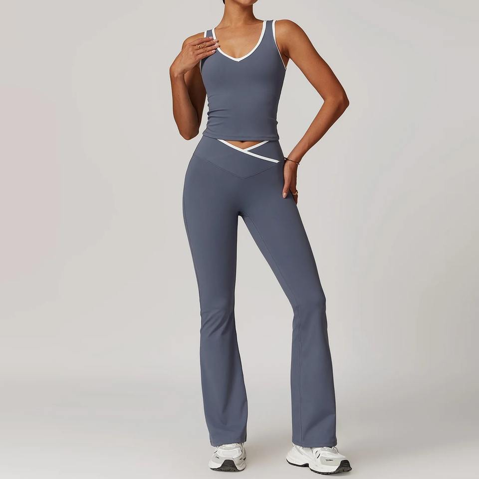 ชุดออกกำลังกาย2ชิ้นสำหรับผู้หญิงชุดออกกำลังกายเล่นกีฬายิมชุดออกกำลังกายเอวสูงเลกกิ้งสปอร์ตบราสวมใส่เล่นกีฬา