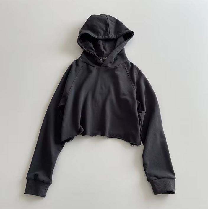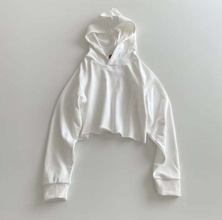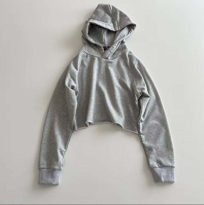 เสื้อครอปมีฮู้ดแบบสวมหัวสำหรับผู้หญิงเสื้อครอปปิดพื้นทำจากผ้าฝ้ายโลโก้ตามสั่ง