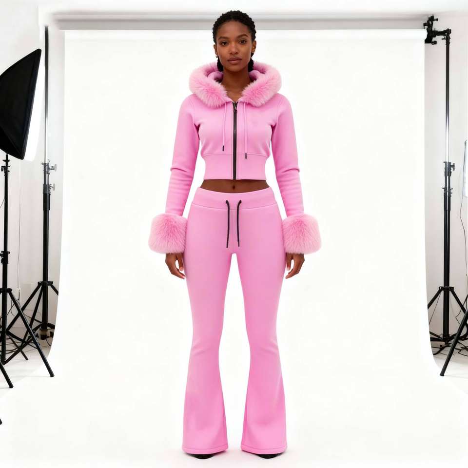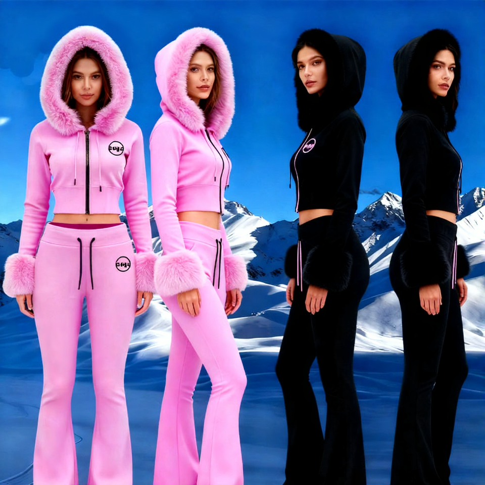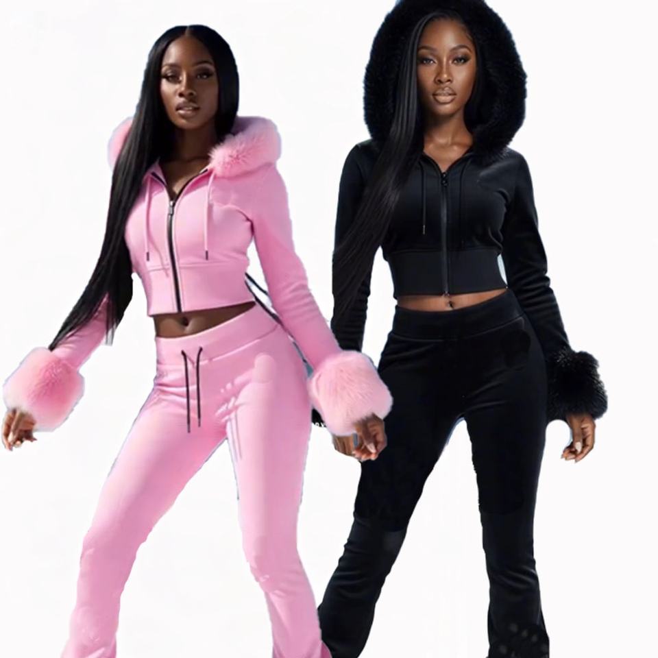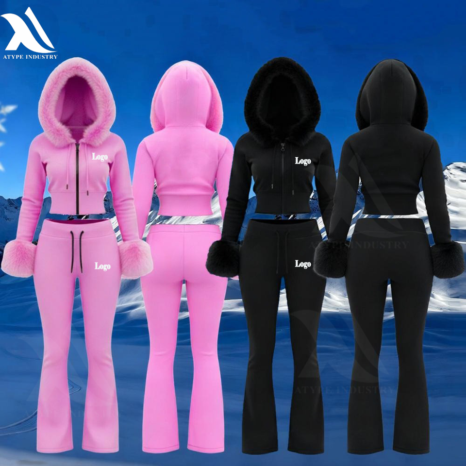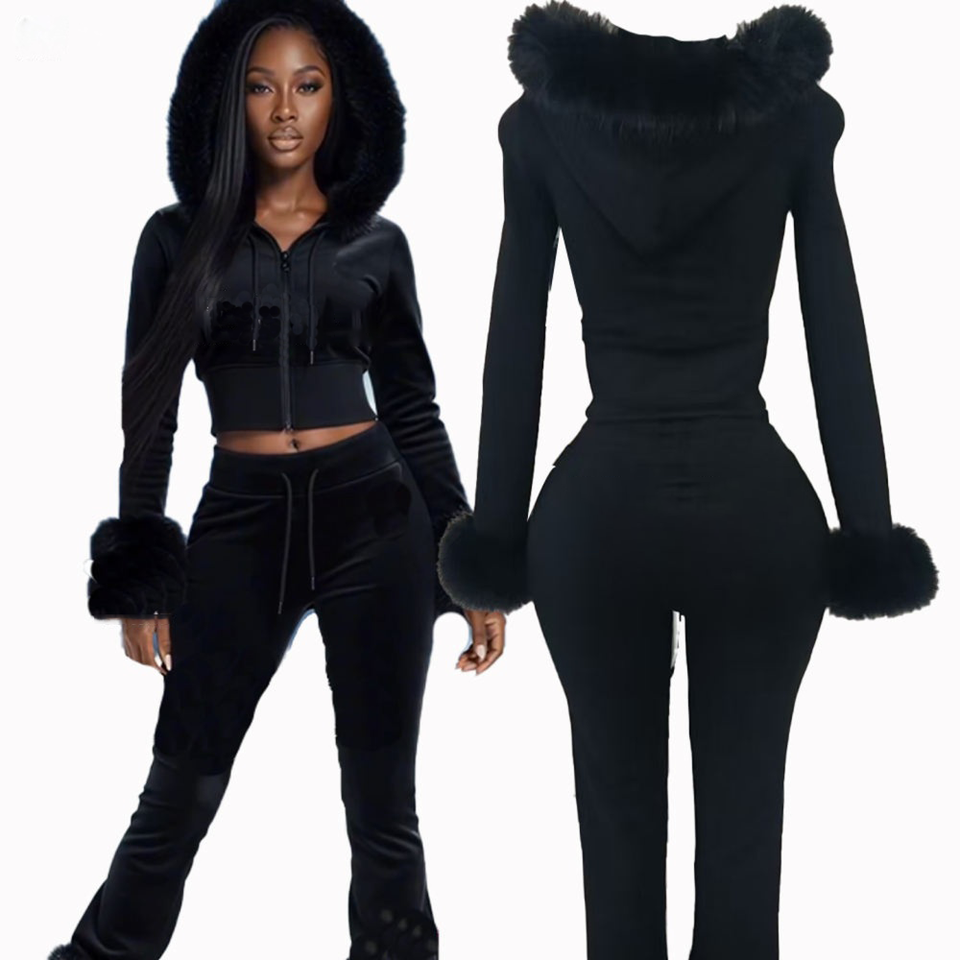 ชุดเซ็ตเสื้อครอปฮู้ดดี้และกางเกงจ็อกเกอร์สองชิ้นสำหรับผู้หญิง ผลิตโดยผู้ผลิตเสื้อผ้าสตรี โลโก้ประดับเพชร สไตล์สตรีทแวร์ ชุดกีฬา ฮู้ดดี้ขนสัตว์ ชุดแทรคสูท