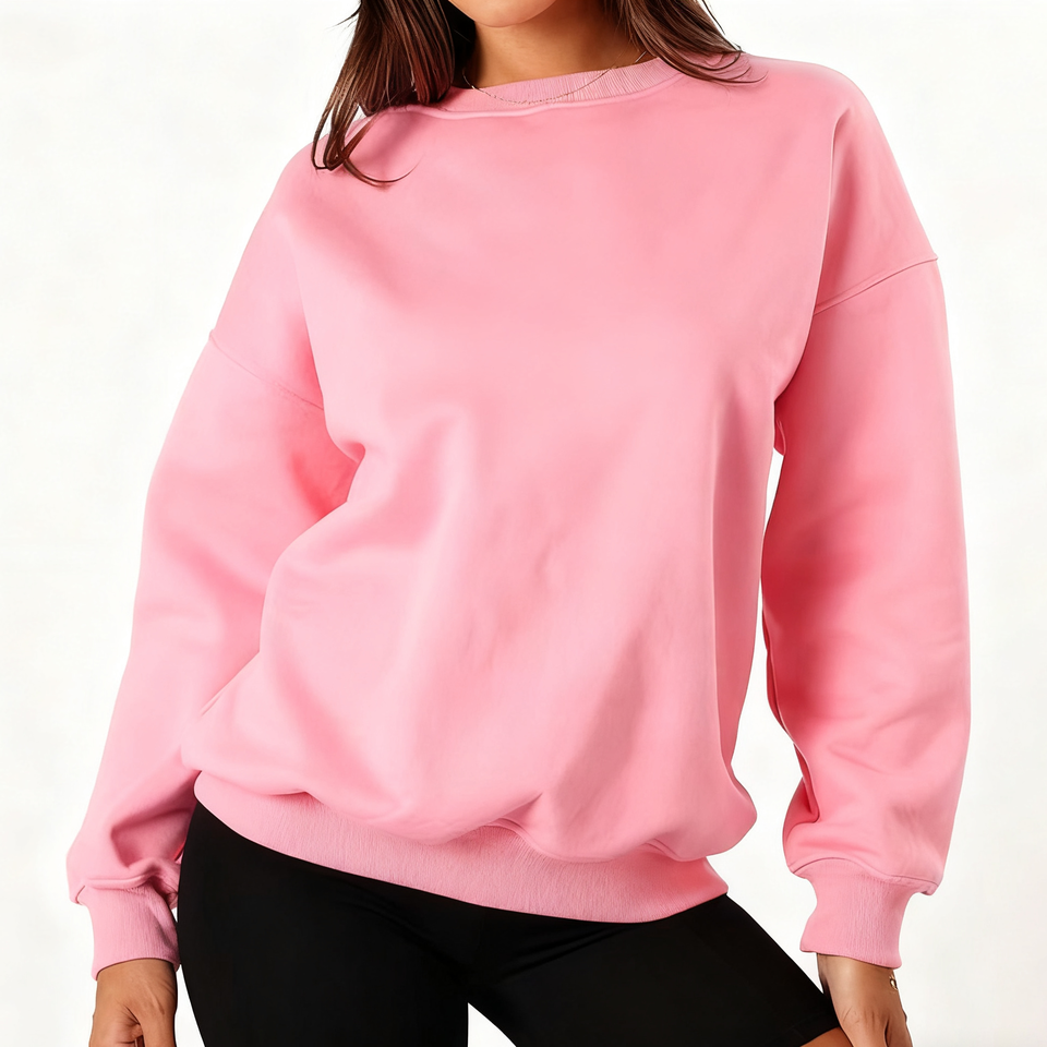 เสื้อกันหนาวคอกลมปักลายสำหรับผู้หญิงผ้าฟลีซผ้าฝ้ายสีชมพูระบายอากาศได้ดีหรูหราสำหรับฤดูหนาว