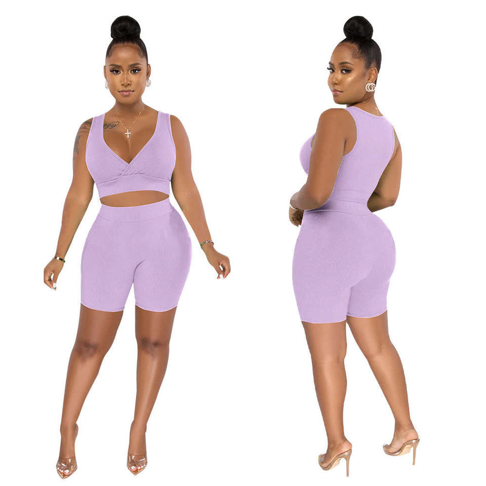 ชุดเซ็ตเสื้อและกางเกงขาสั้นผ้าไนลอนสแปนเด็กซ์2ชิ้นสำหรับผู้หญิงเสื้อผ้าฤดูร้อน