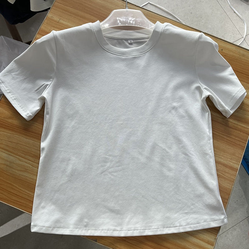 เสื้อยืดผู้หญิง เสื้อยืดคอกลมสำหรับฤดูร้อน ใส่โลโก้ได้ เสื้อยืดผู้หญิงแบบเรียบๆ สั่งทำได้