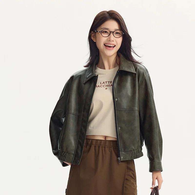 เสื้อแจ็คเก็ตหนังแท้สำหรับผู้ชาย, แจ็คเก็ตกันลมกันน้ำทรงหลวมสไตล์เท่ไฮสตรีทสำหรับฤดูหนาว