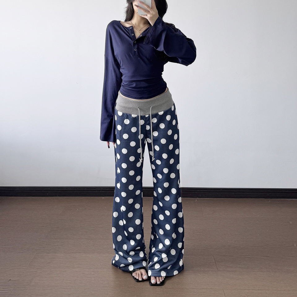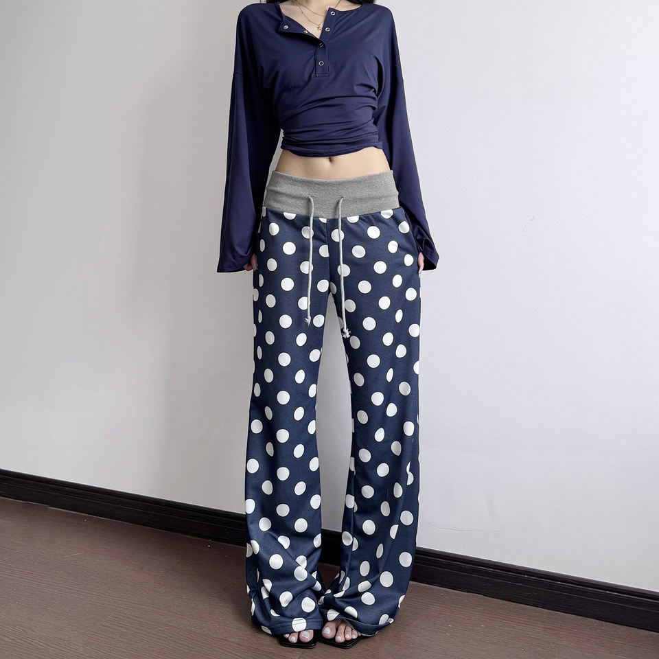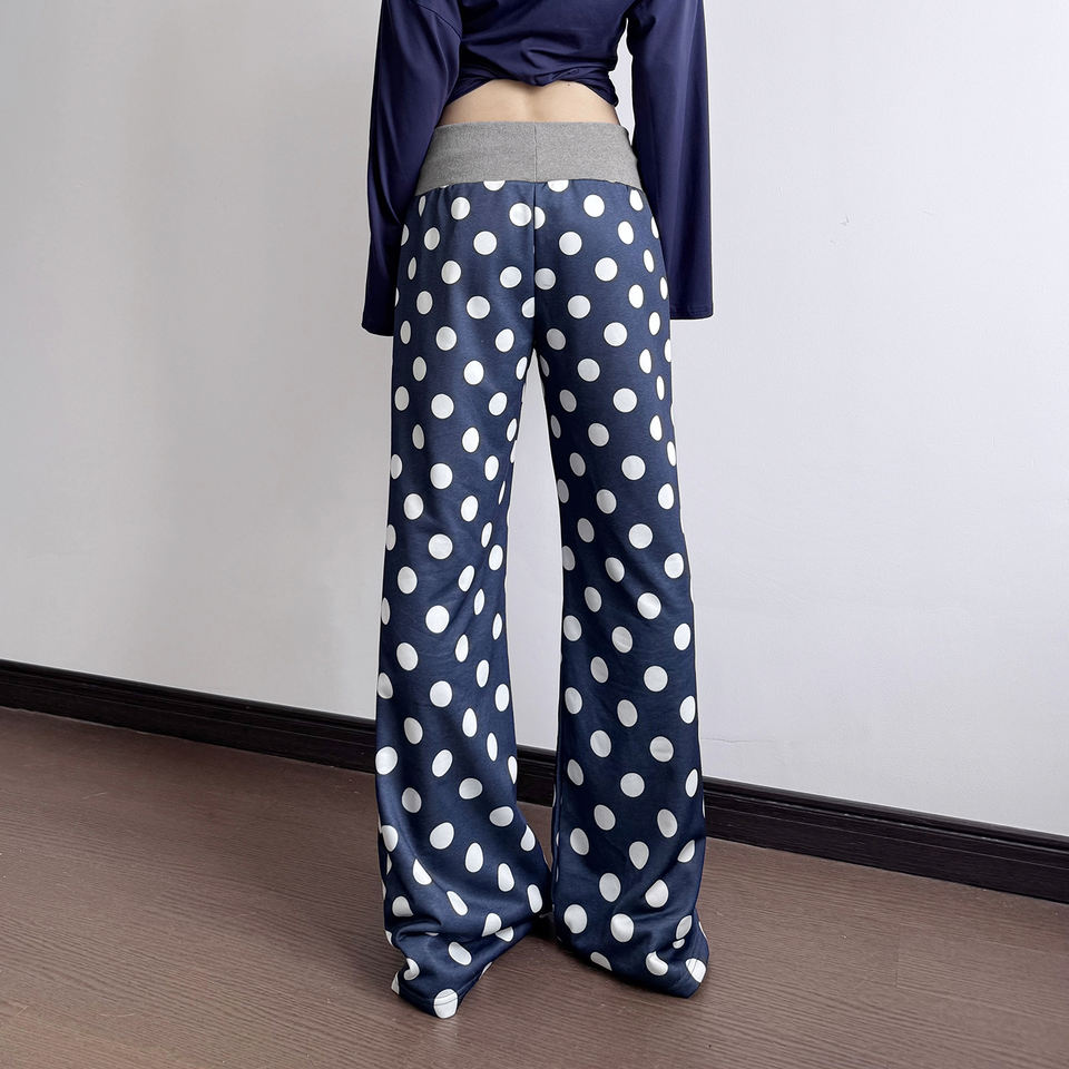 กางเกงขายาวทรงตรงลายจุดสีสันสดใสสำหรับผู้หญิง เอวยางยืด มีเชือกผูก ทรงปกติ สวมใส่สบายๆ ลำลอง 100%