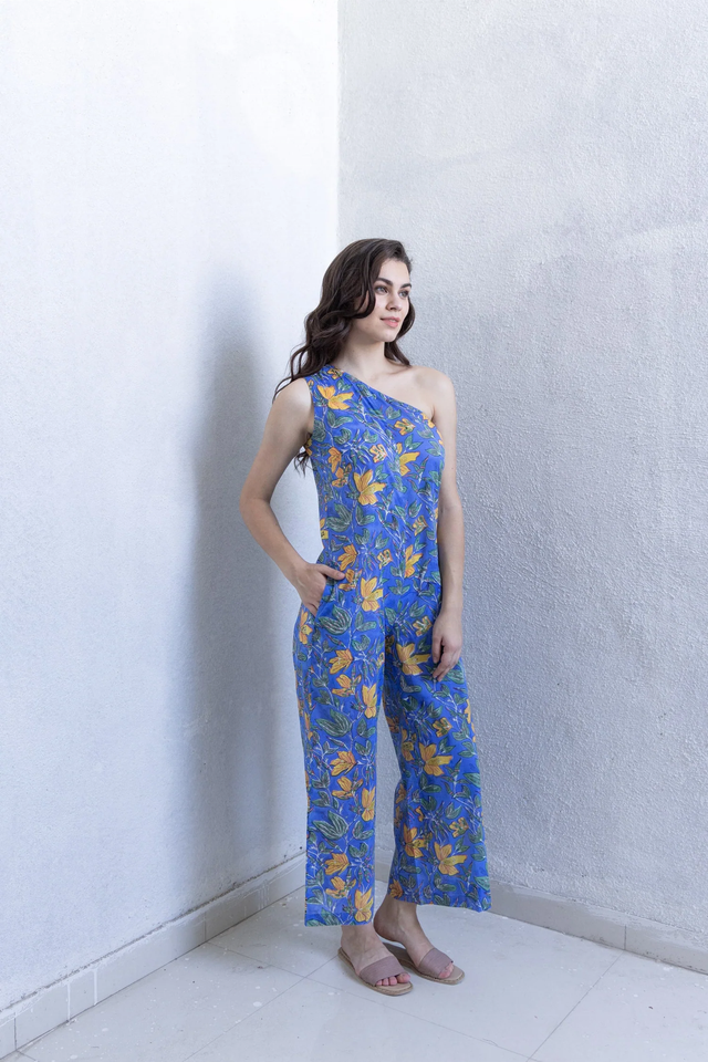 จั๊มสูทไหล่เดียวสำหรับผู้หญิงชุดว่ายน้ำพิมพ์ลายดอกไม้ชุดคลุมชุดว่ายน้ำ