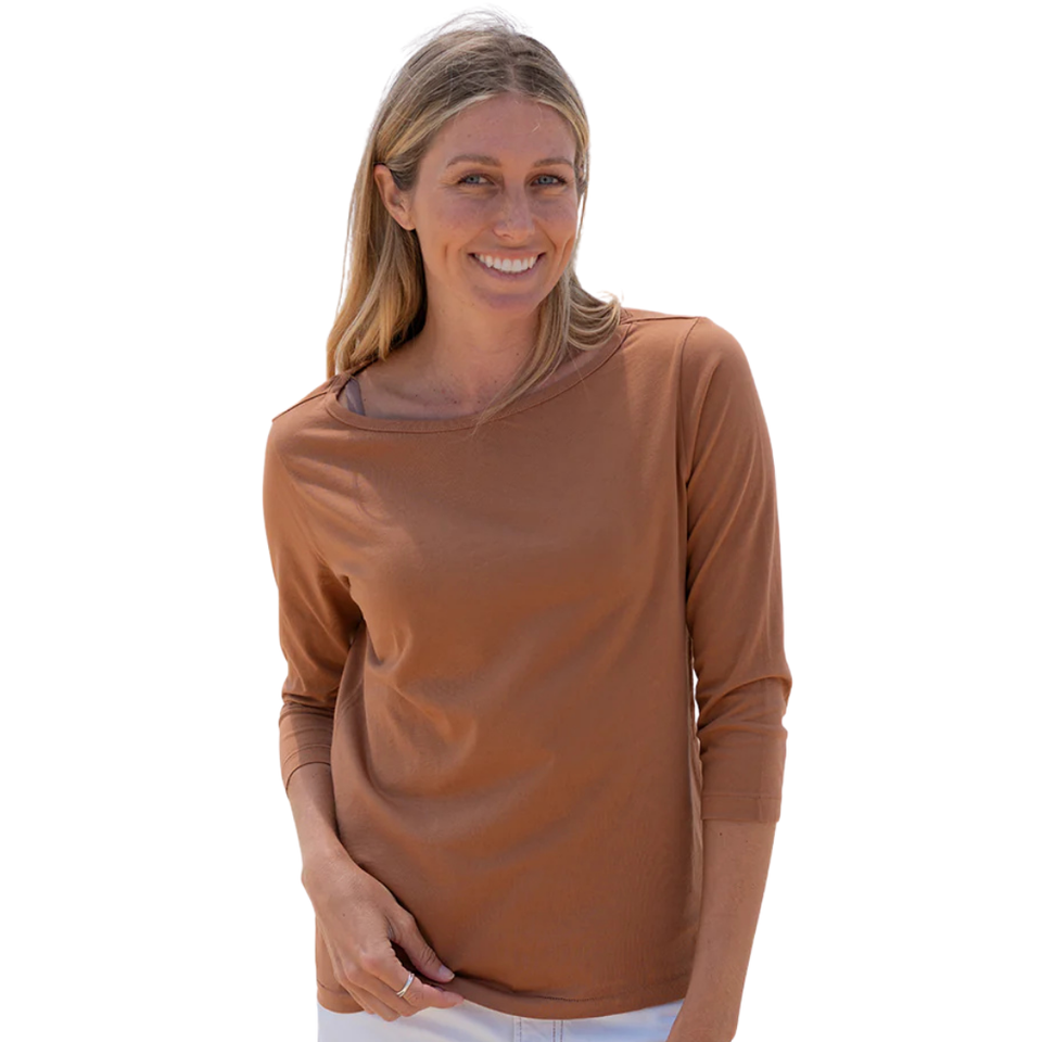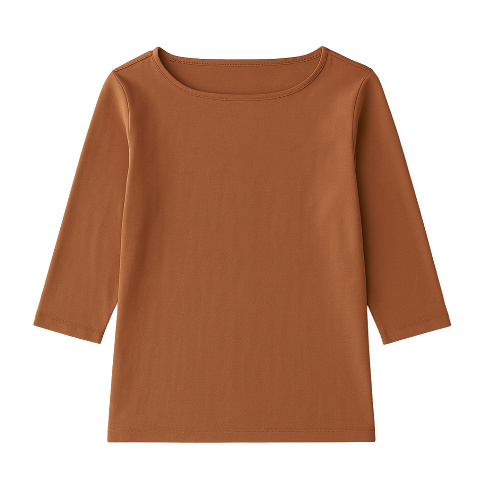 เสื้อยืดคอกว้างแขนสามส่วนผู้หญิง ผ้าคอตตอนออร์แกนิค 100% ระดับพรีเมียม ผ่านการรับรอง GOTS ผ้าเนื้อนุ่มพิเศษ ทรงคลาสสิก