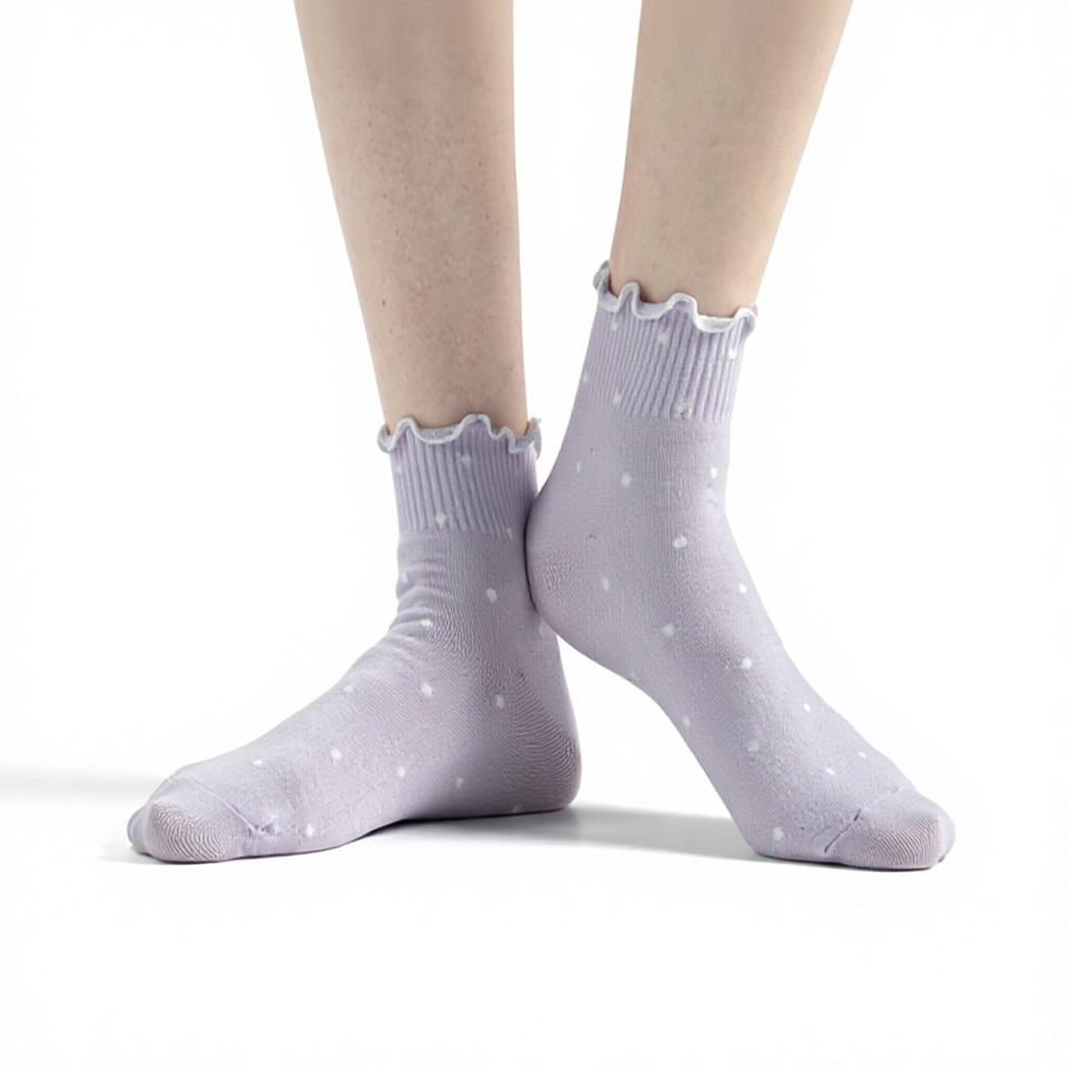 ถุงเท้าข้อสั้นผ้าฝ้ายรักษ์โลกสำหรับผู้หญิง-ลายจุดสีพาสเทล ดีไซน์ระบายสไตล์เกาหลี ถุงเท้าใส่ได้ทุกวัน-คิคิยะ