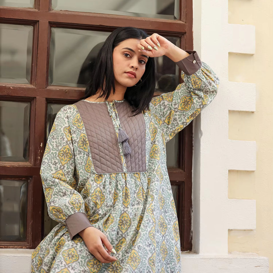 ชุดเดรสลำลองผ้าฝ้ายพิมพ์ลายบล็อกสำหรับผู้หญิง ความยาวปานกลาง รับผลิตแบบ OEM ขายส่ง ผู้ผลิตเสื้อผ้าสตรีจากอินเดีย
