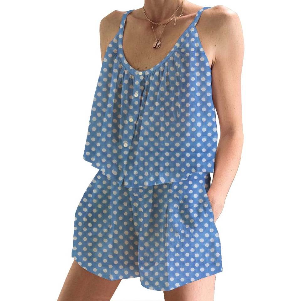 ชุดนอนผ้าฝ้ายลำลองสำหรับผู้หญิง ชุดนอนขาสั้นเป็นของขวัญสำหรับเธอ ชุดนอนขาสั้นสำหรับฤดูใบไม้ผลิ/ฤดูร้อน ชุดนอนสายเดี่ยวแบบพอดีตัว