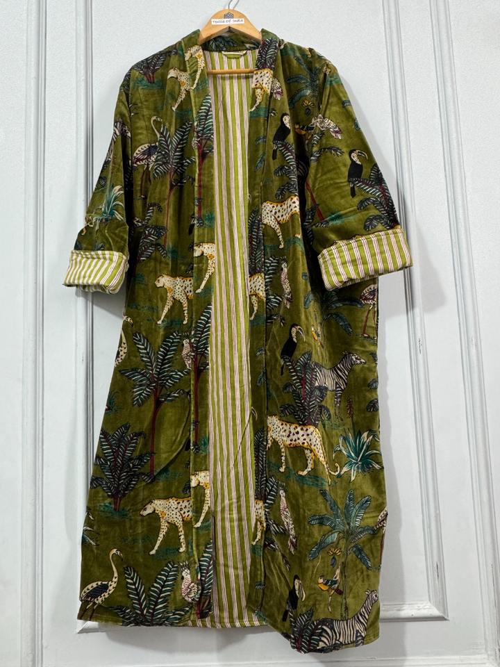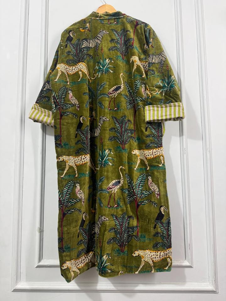 ชุดเดรสแจ็คเก็ตผ้าฝ้ายยาวคลุมเข่าลายสัตว์ป่าสไตล์ชาติพันธุ์สำหรับผู้หญิง สวมใส่แบบเลเยอร์ เปิดด้านหน้า สำหรับฤดูร้อน แบบเรียบง่าย