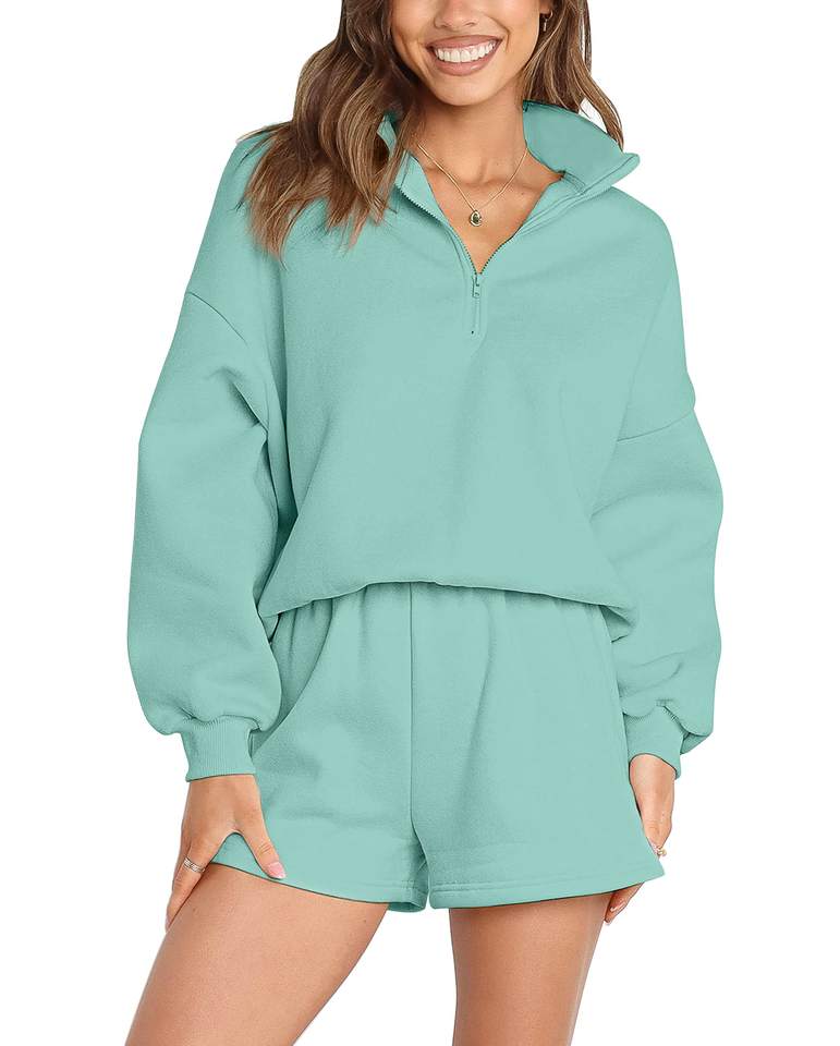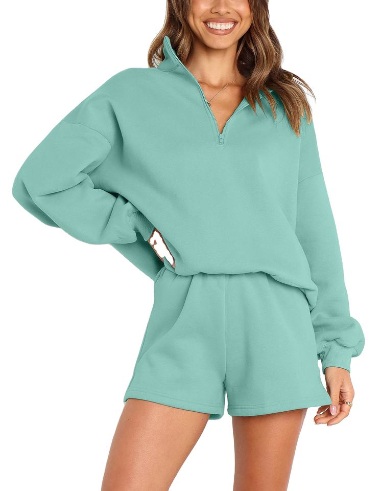 ชุดสเวตเชิ้ตโยคะ2ชิ้นกางเกงขาสั้นผ้าสแปนเด็กซ์/ โพลีเอสเตอร์ทรงโอเวอร์ไซส์สำหรับผู้หญิง