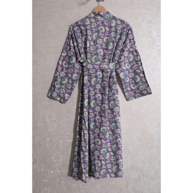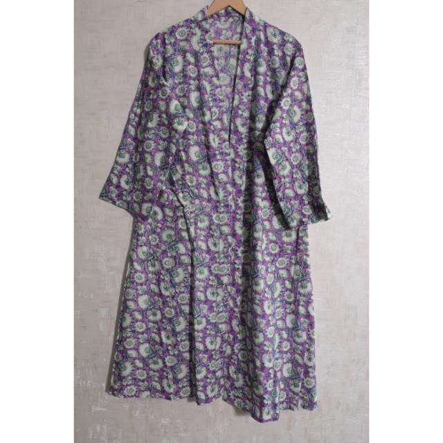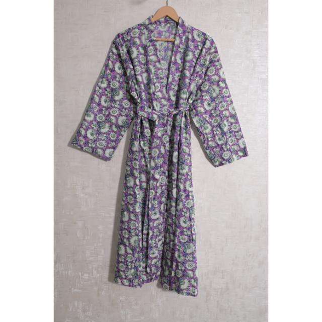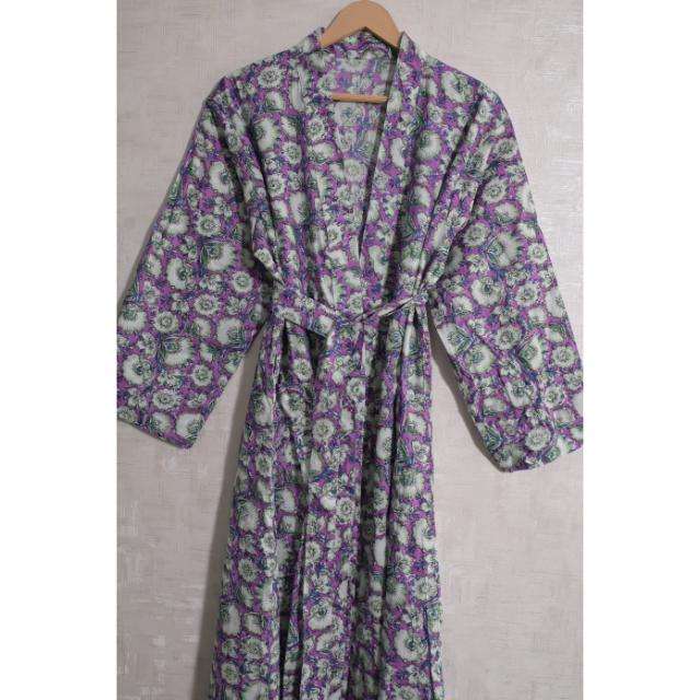 ชุดคลุมอาบน้ำผ้าฝ้ายพิมพ์ลายสำหรับผู้หญิง, เสื้อคลุมกิโมโนแบบยาว, เสื้อคลุมอาบน้ำเนื้อนุ่มระบายอากาศได้ดี, ชุดลำลองสไตล์โบฮีเมียน