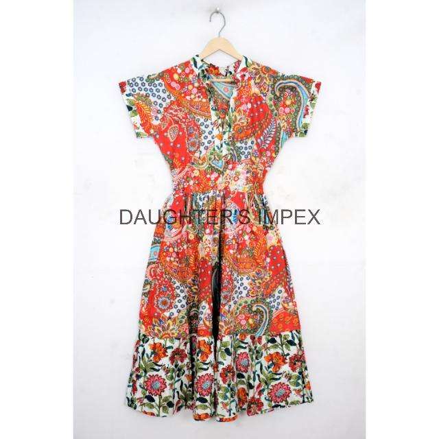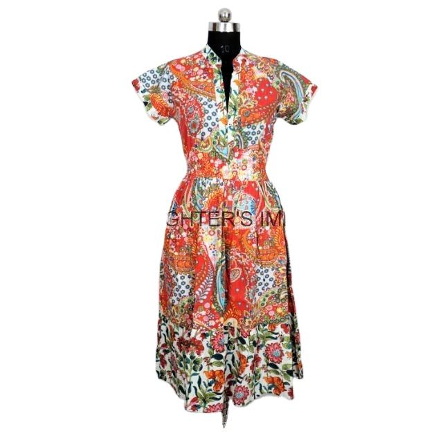 เดรสผ้าฝ้ายพิมพ์ลายดอกไม้สไตล์โบฮีเมียนสำหรับผู้หญิง ทรงเข้ารูป แขนสั้น ระบายอากาศได้ดี ซักได้ เหมาะสำหรับใส่ลำลอง ใส่ทำงาน ใส่ในฤดูร้อน สไตล์ธรรมชาติ