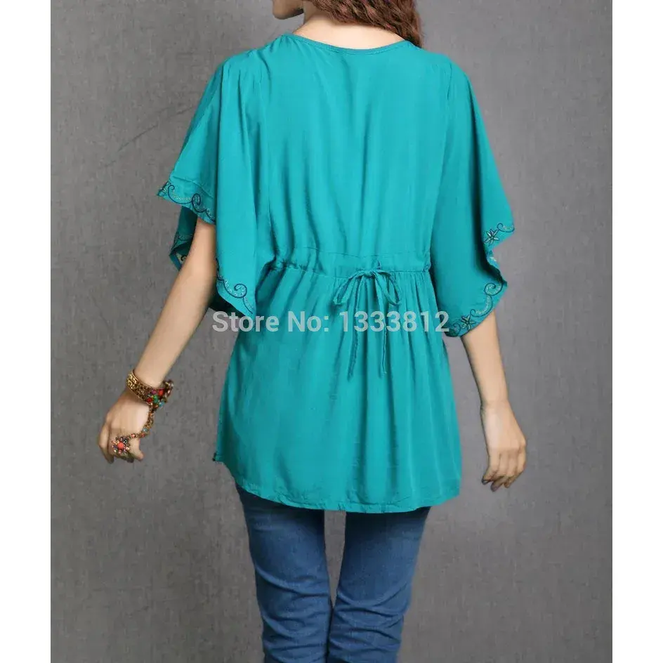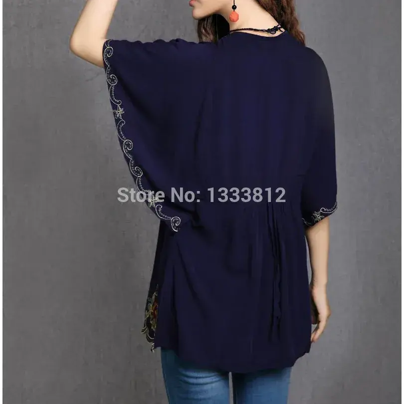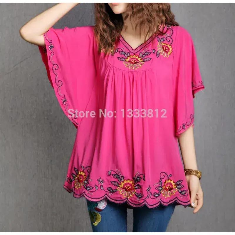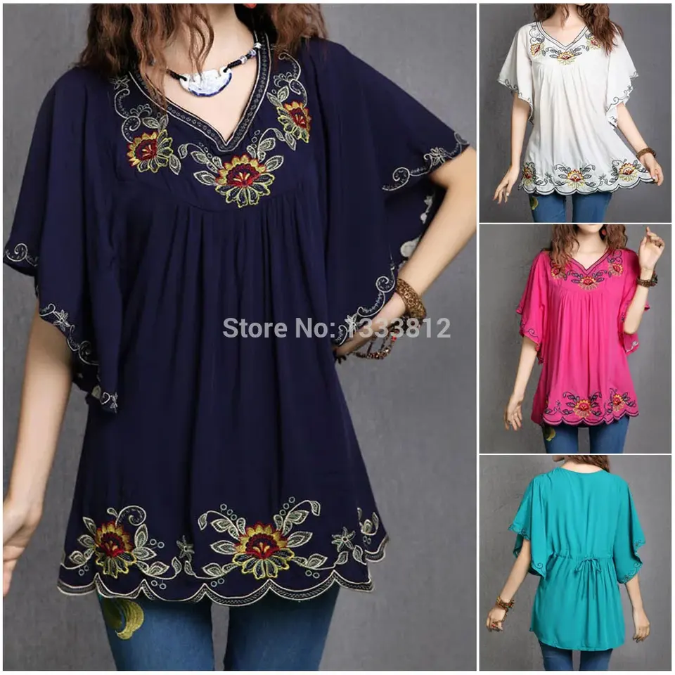 ผ้าฝ้ายผู้หญิงลายปักดอกไม้สไตล์เม็กซิกันแบบวินเทจ
