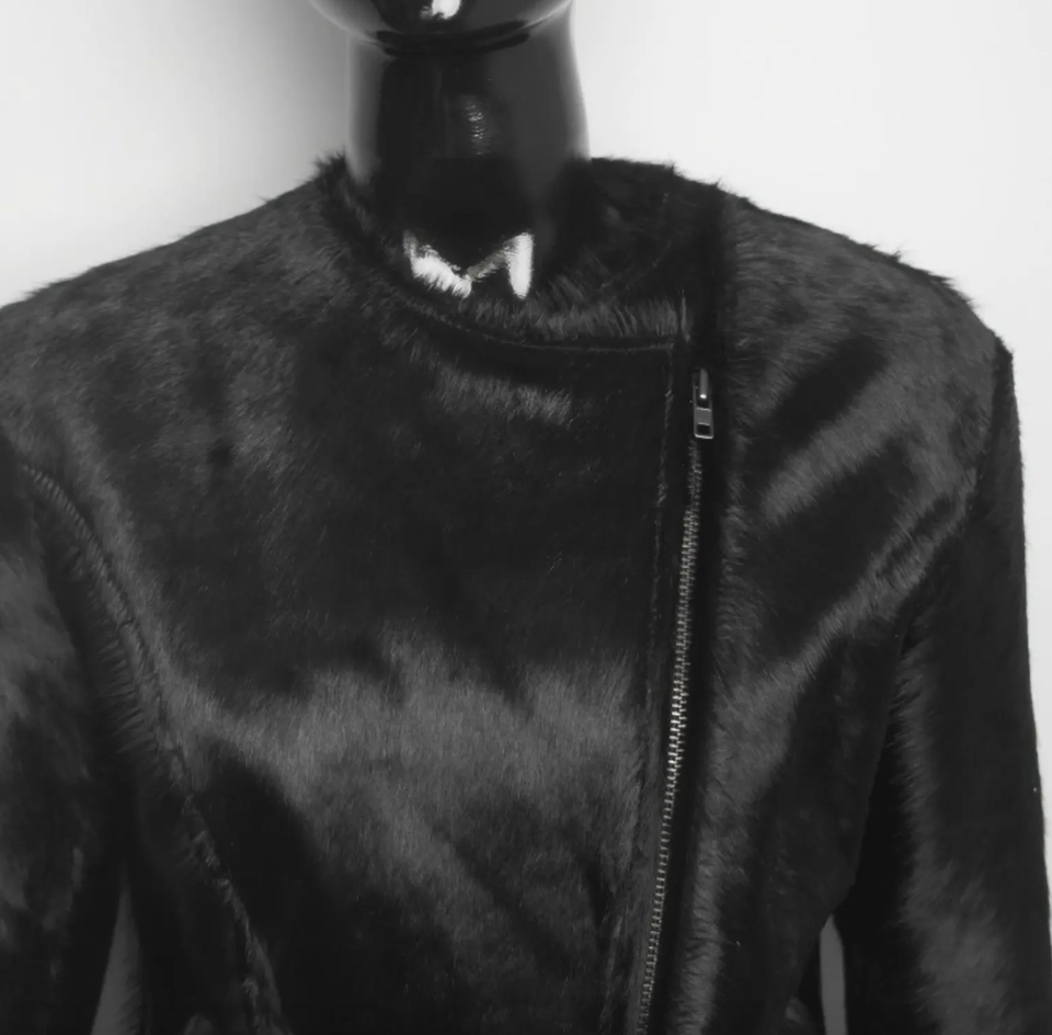 แจ็กเก็ตหนังวัวแท้สีดำสำหรับผู้หญิง, แจ็คเก็ตหนังสไตล์นักขี่จักรยานพร้อมกระเป๋า