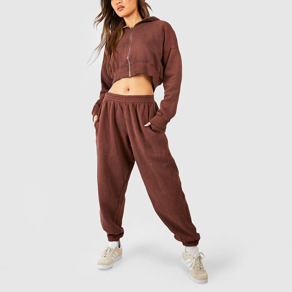 ชุดเซ็ตเสื้อครอปและกางเกงวอร์มผู้หญิง สวมใส่สบาย เหมาะสำหรับออกกำลังกาย