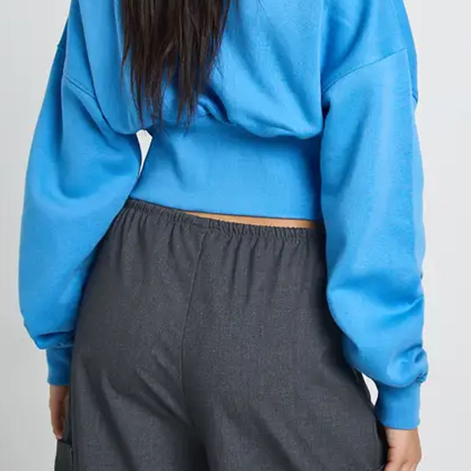 เสื้อสเวตเชิ้ตผู้หญิงเนื้อผ้านุ่มสบาย ดีไซน์ซิปแบบรูดขึ้น แขนยาว พร้อมบริการออกแบบโลโก้ตามสั่ง ดีไซน์ปลายแขนแบบริบ