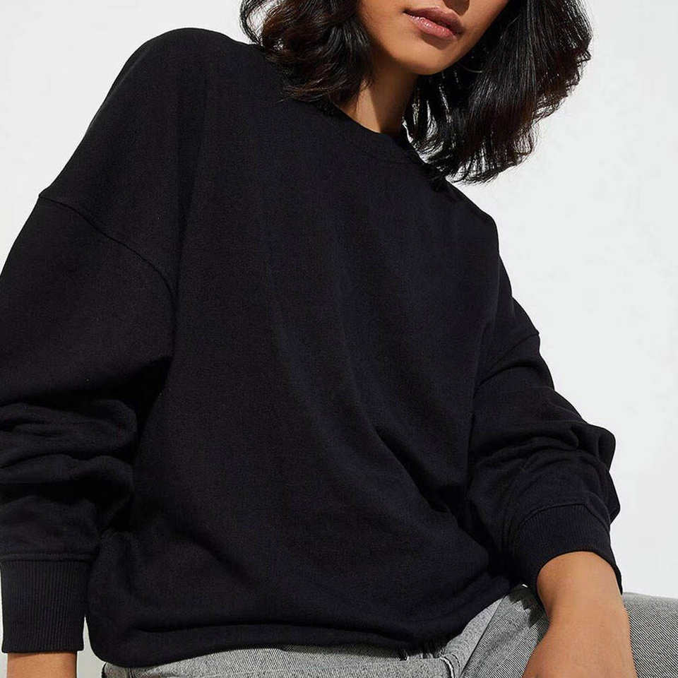 เสื้อสเวตเชิ้ตคอกลมทรงโอเวอร์ไซส์สำหรับผู้หญิง ผ้าระบายอากาศ สไตล์ฤดูหนาว ลายเรียบ โลโก้ด้านหลัง รับผลิตตามแบบ