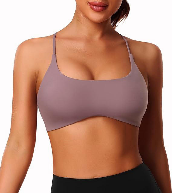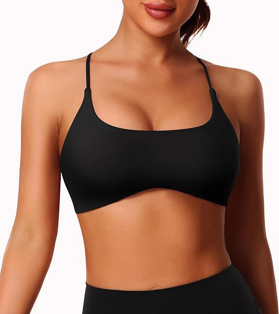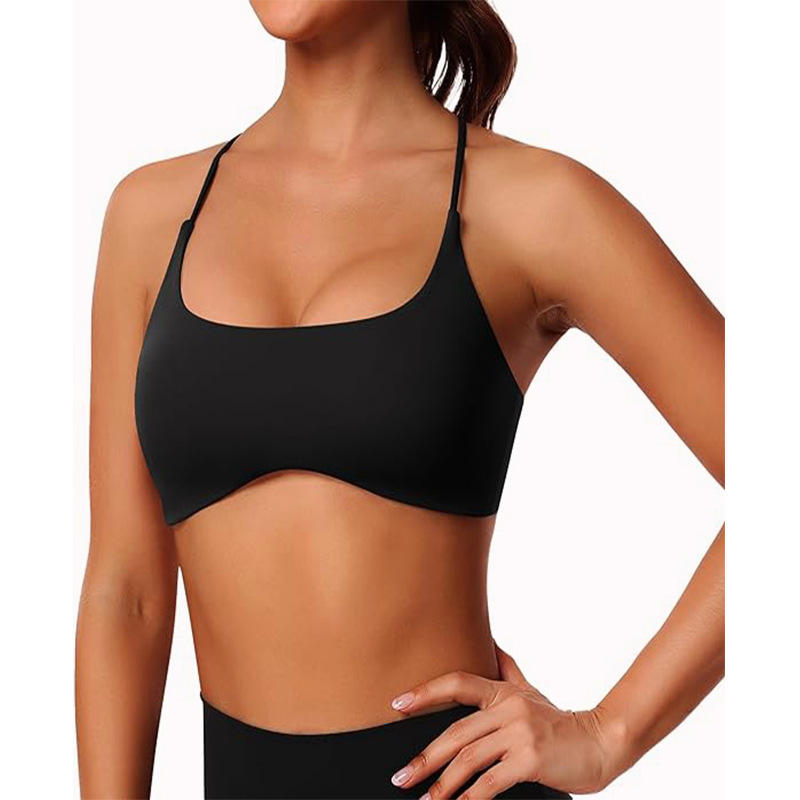 เสื้อชั้นในกีฬาโยคะแบบเปิดหลัง ไร้สาย สำหรับผู้หญิง ระบายอากาศได้ดี ดีไซน์ไขว้เรียบง่าย รองรับระดับปานกลาง ผลิตจากวัสดุสแปนเด็กซ์/โพลีเอสเตอร์
