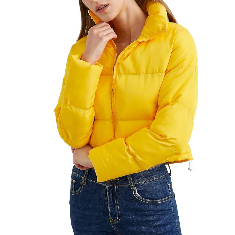 เสื้อแจ็กเก็ตพัฟเฟอร์ครอปสำหรับผู้หญิง