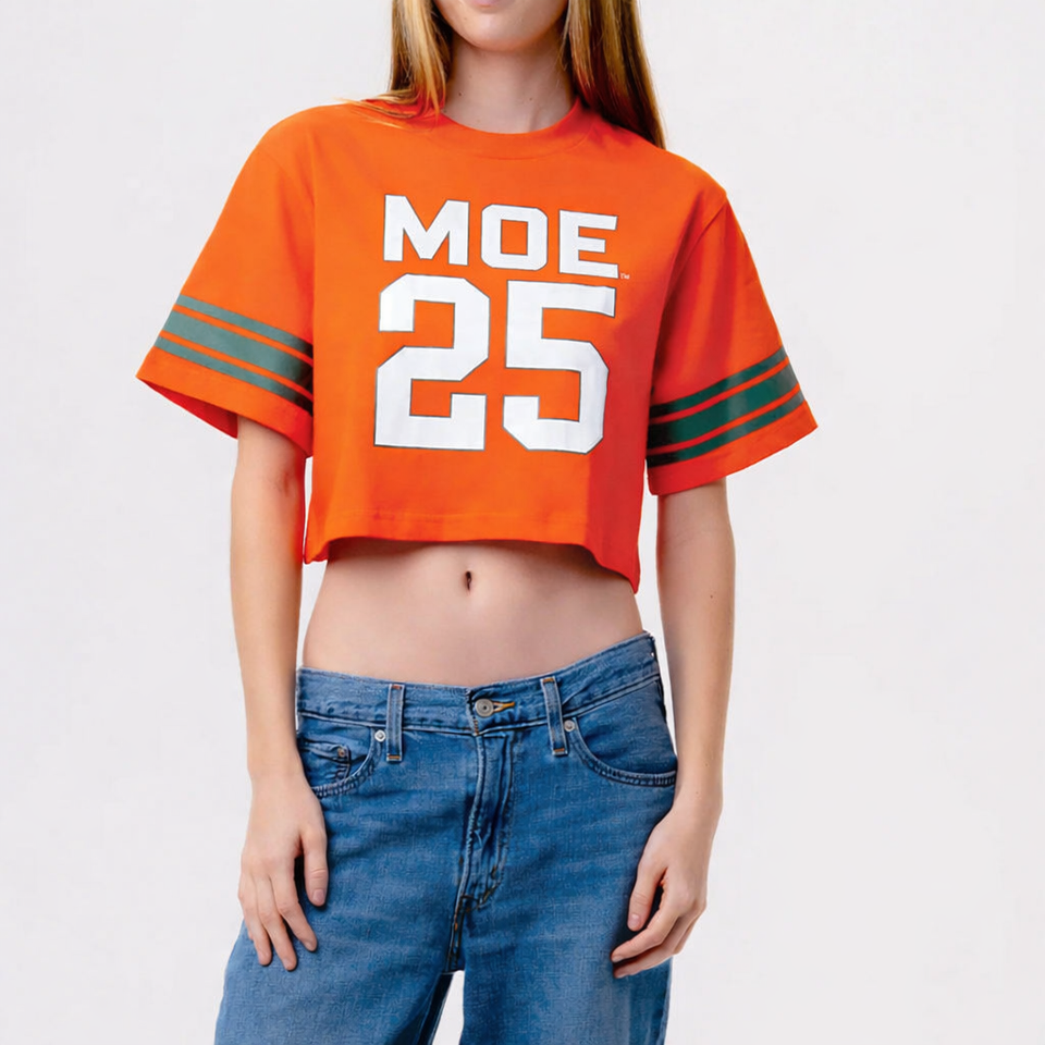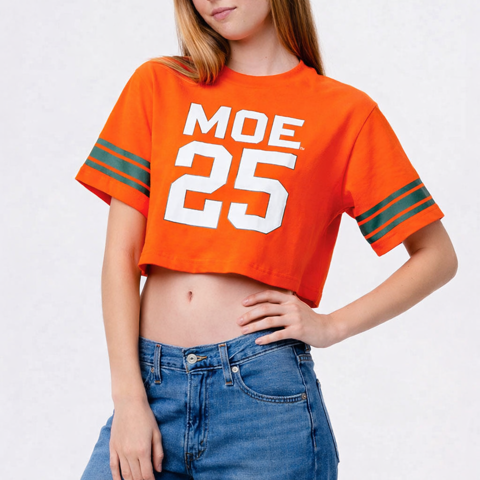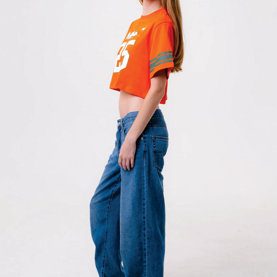 เสื้อยืดครอปทรงอเมริกันฟุตบอลสำหรับผู้หญิง ผ้าคอตตอนผสม แขนสั้น สไตล์ลำลอง พิมพ์ลายหมายเลข รับผลิตเสื้อแบบ Private Label จำนวนมาก