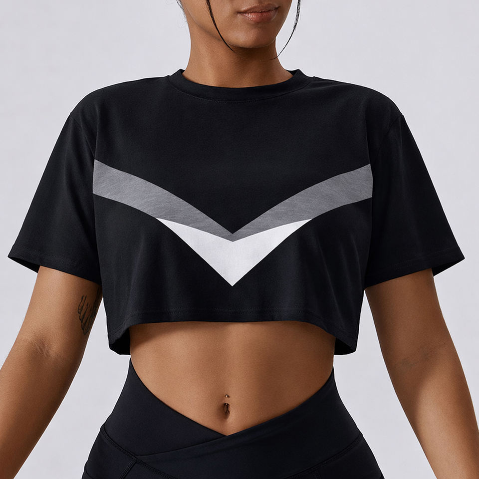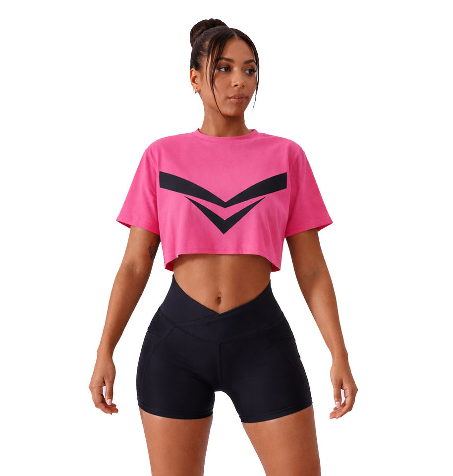 เสื้อยืดครอปสปอร์ตผู้หญิง สกรีนโลโก้ได้ แขนสั้น คอกลม ฟิตเนส สตรีทแวร์