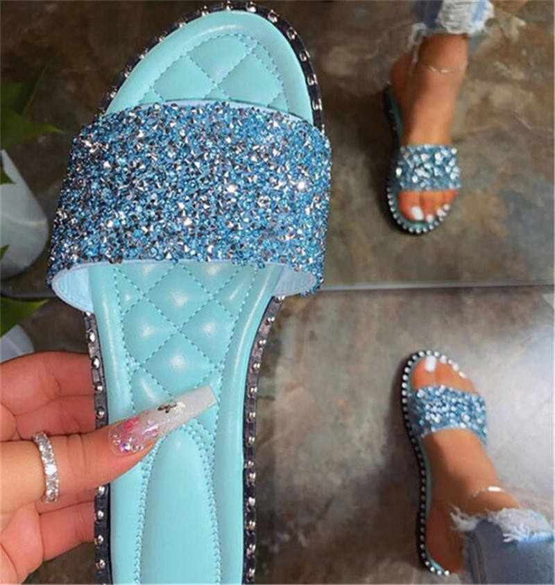 รองเท้าแตะเด็กผู้หญิงประดับเพชรรองเท้าแตะส้นแบนสไตล์ใหม่ชื่อ