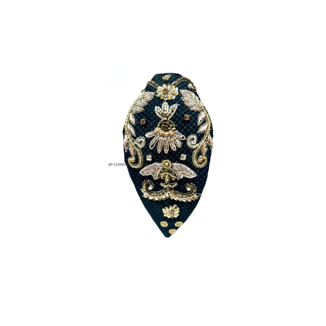 เครื่องประดับผมแฟชั่นสำหรับผู้หญิง ออกแบบเองได้ ใช้ได้ทุกวันในเดือนรอมฎอน ผ้าเครป/กำมะหยี่ งานปักมือ แฮนด์เมด ผ้าโพกหัวแบบ Turban สำหรับวันอีด