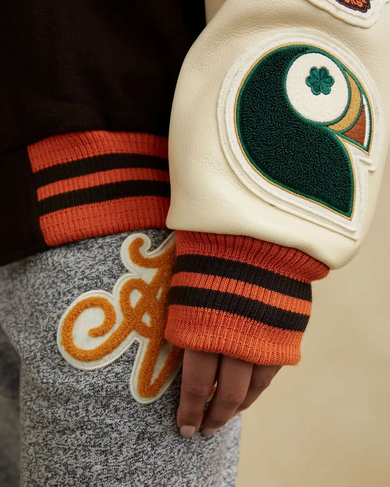 แจ็กเก็ตเลตเตอร์แมนสำหรับผู้หญิงเสื้อแจ็คเก็ตหนังทำด้วยผ้าขนสัตว์สำหรับถนนสูงกันน้ำกันลมออกแบบได้ตามต้องการ