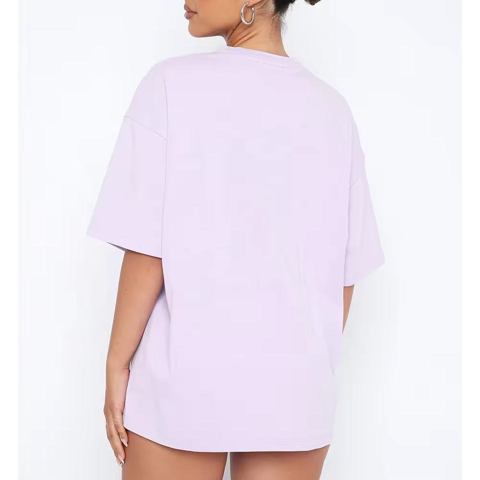 เสื้อยืดสตรีทแวร์เฮฟวี่เวทออกแบบได้ตามต้องการเสื้อยืดผ้าฝ้ายระบายอากาศเปิดไหล่ตกสำหรับผู้หญิงเสื้อยืดโอเวอร์ไซส์พิมพ์ลายว่างเปล่า