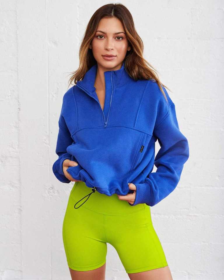 เสื้อฮู้ดผู้หญิงพิมพ์ลายตามสั่ง ซิปครึ่งตัว แขนยาว สวมใส่สบาย ทรงหลวม สีพื้น โลโก้ด้านหน้า เป็นมิตรต่อสิ่งแวดล้อม