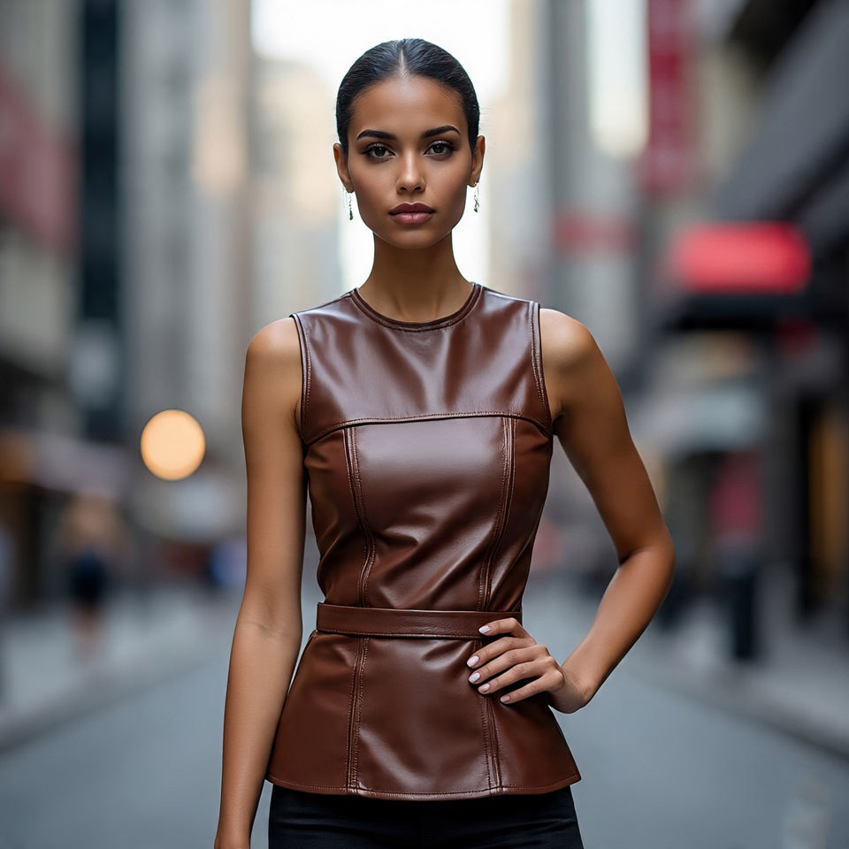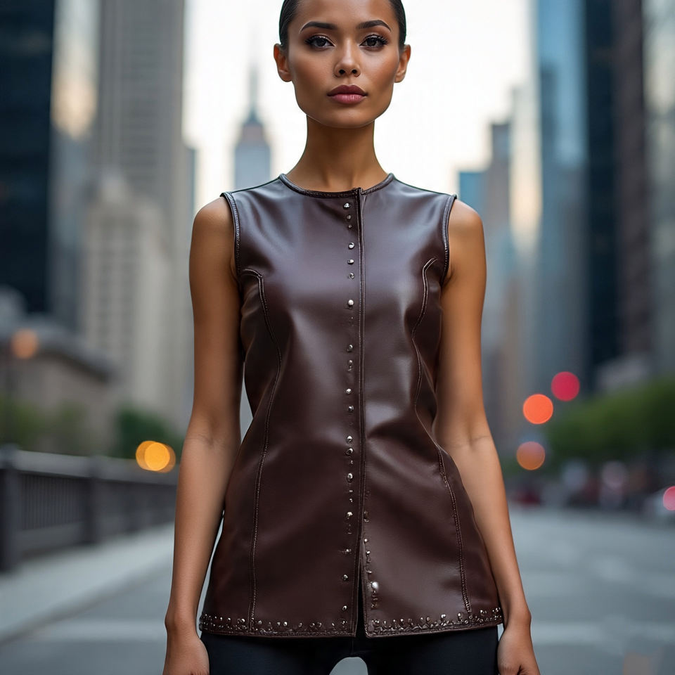 Keywords:Women Full Zipper Sheep Leather Tops Vest