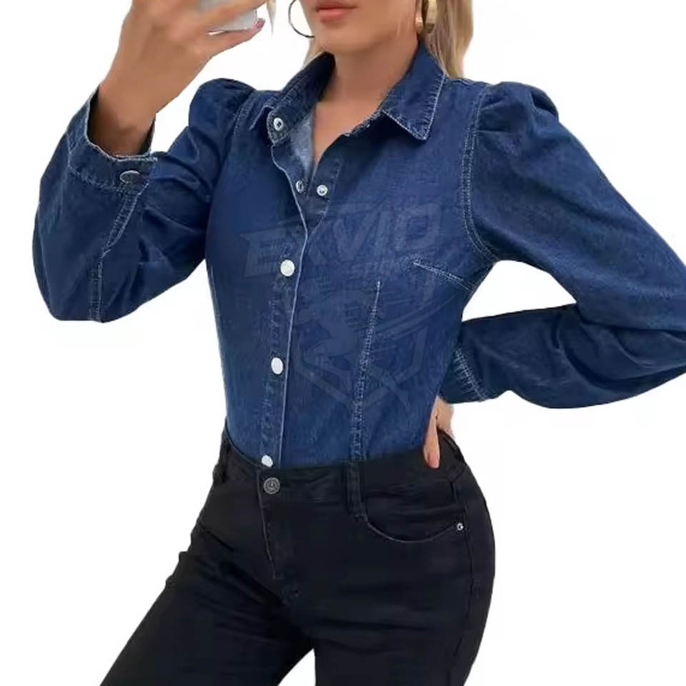 เสื้อเชิ้ตยีนส์ผู้หญิง ดีไซน์ใหม่ วัสดุคุณภาพดี ราคาสมเหตุสมผล ระบายอากาศได้ดี