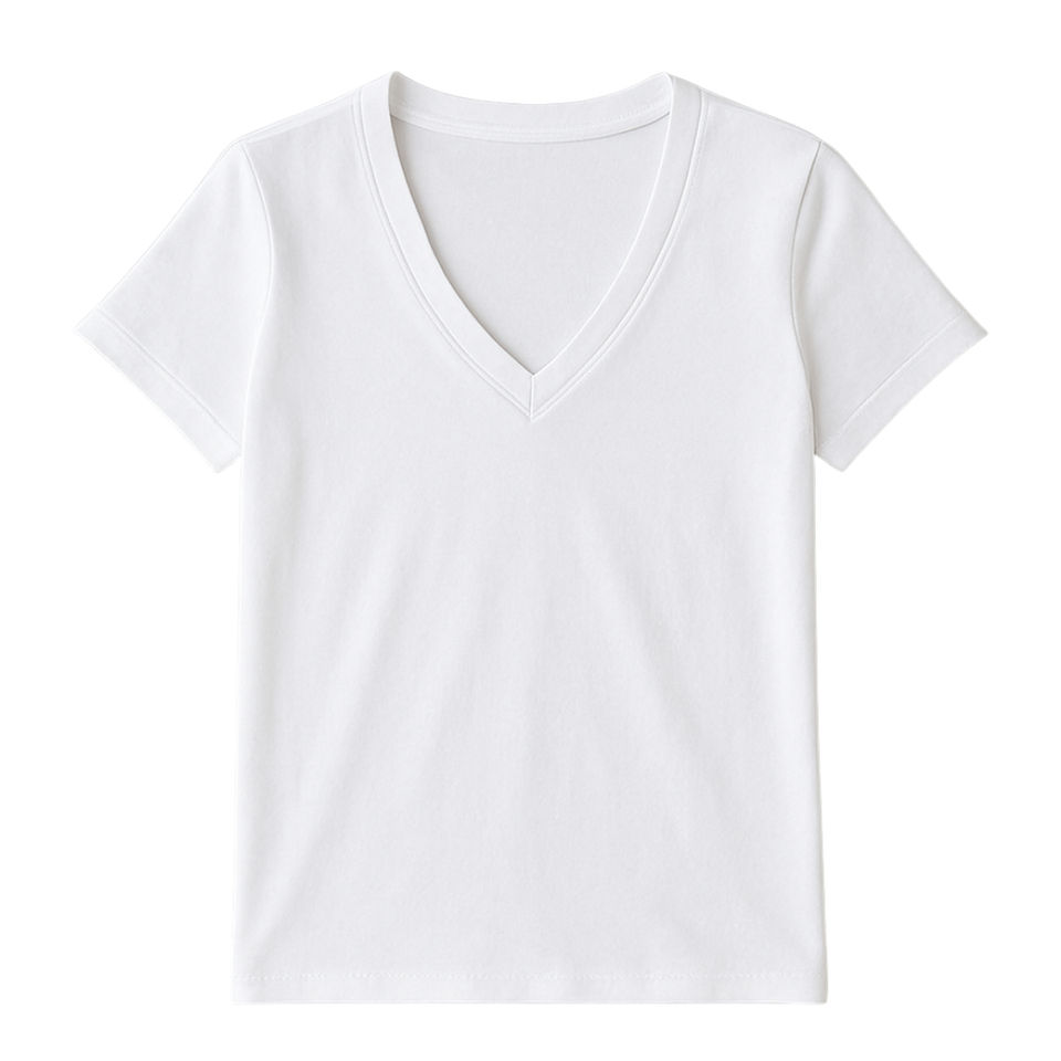 เสื้อยืดคอวีแขนสั้นสีขาวสำหรับผู้หญิง ปรับแต่งได้ ผลิตจากโพลีเอสเตอร์/คอตตอน เป็นมิตรต่อสิ่งแวดล้อม ได้รับการรับรองมาตรฐาน GOTS คุณภาพพรีเมียม เนื้อผ้านุ่ม สวมใส่สบาย